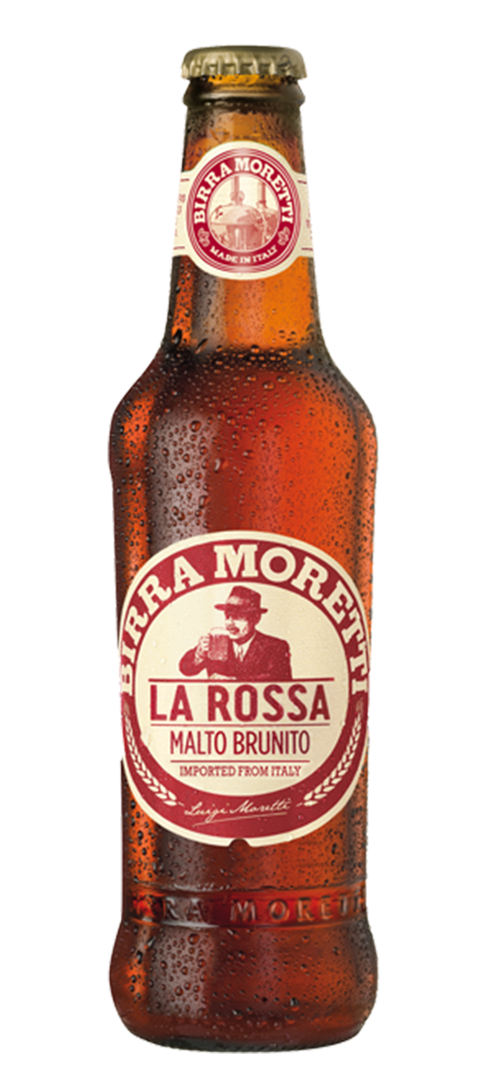 Birra Moretti La Rossa is a double malt beer produced using 100% high quality barley malt. This gives it a full, caramelised malt flavour and an intense aroma of roasted malt. Its distinctive amber colour originates from the type of malt used when brewing, a special malt which is dried and roasted.